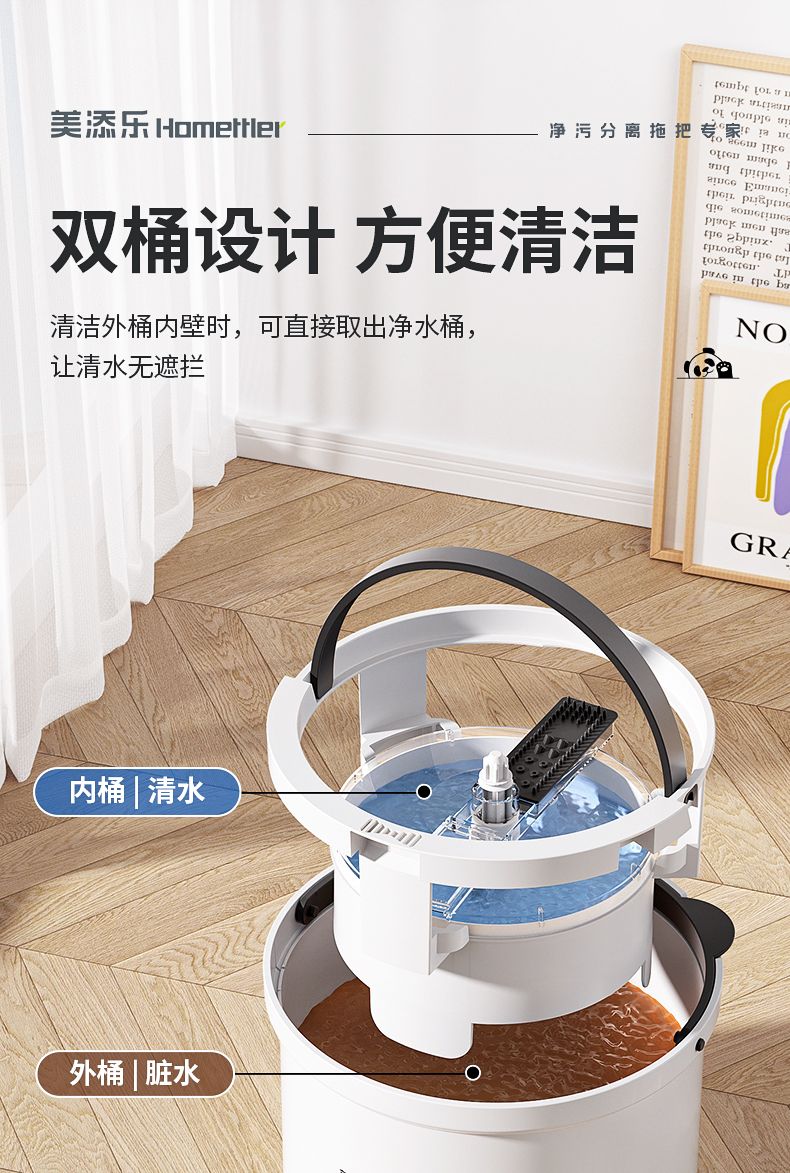 美添乐拖把家用一拖净免手洗净污分离旋转拖把MTL-DS125 (3布+清洁片)