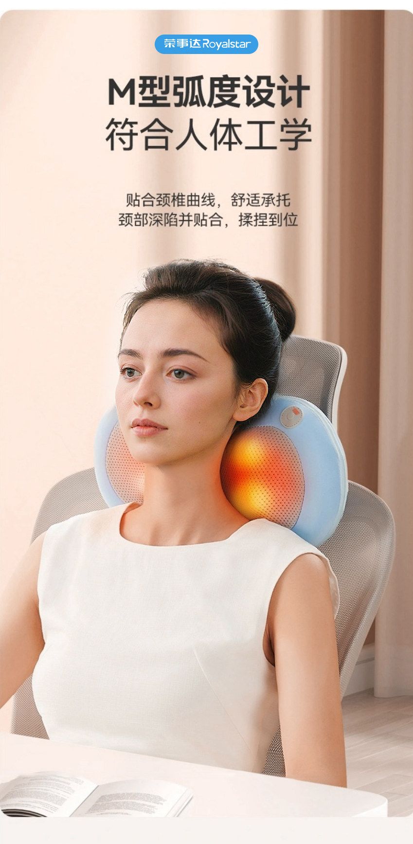 荣事达颈椎按摩器仪肩颈部按摩颈枕腰部背部靠枕全身多功能自动揉捏脖子