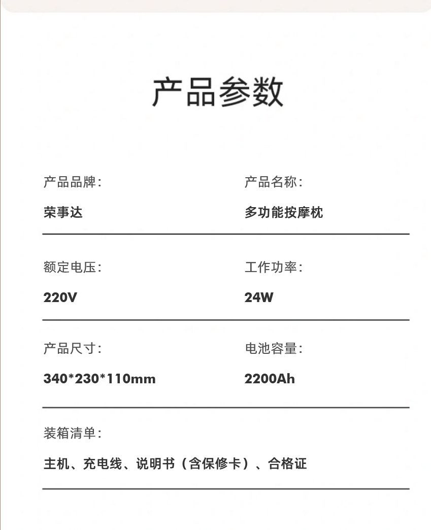 商品名称:荣事达颈椎按摩器仪肩颈部按摩颈枕腰部背部靠枕全身多功能自动揉捏脖子