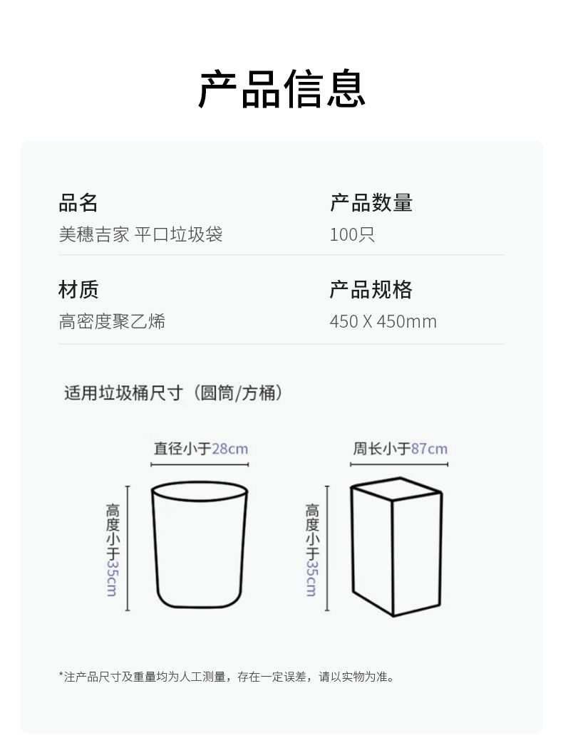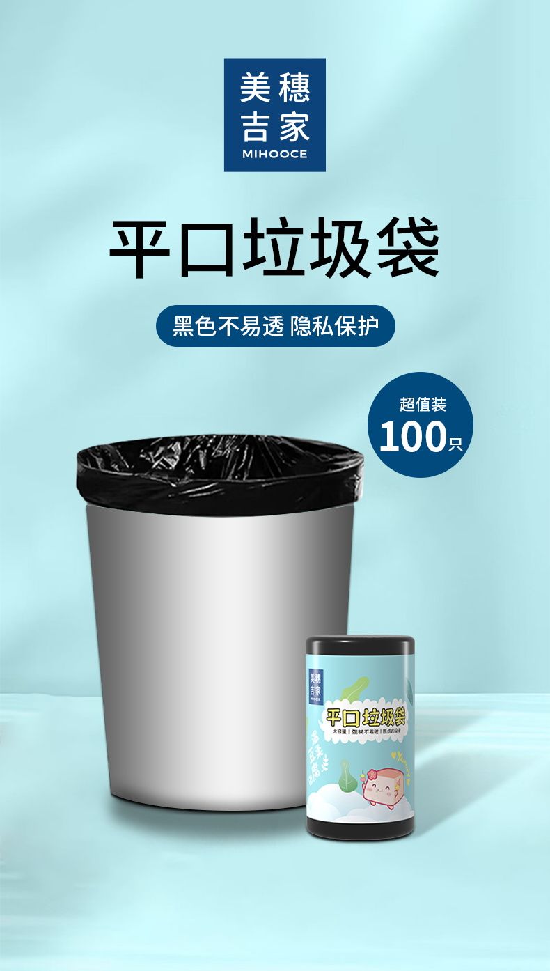 商品名称:美穗吉家(mihooce)平口式垃圾袋加厚厨房家用办公室商用塑料袋 100只/卷
