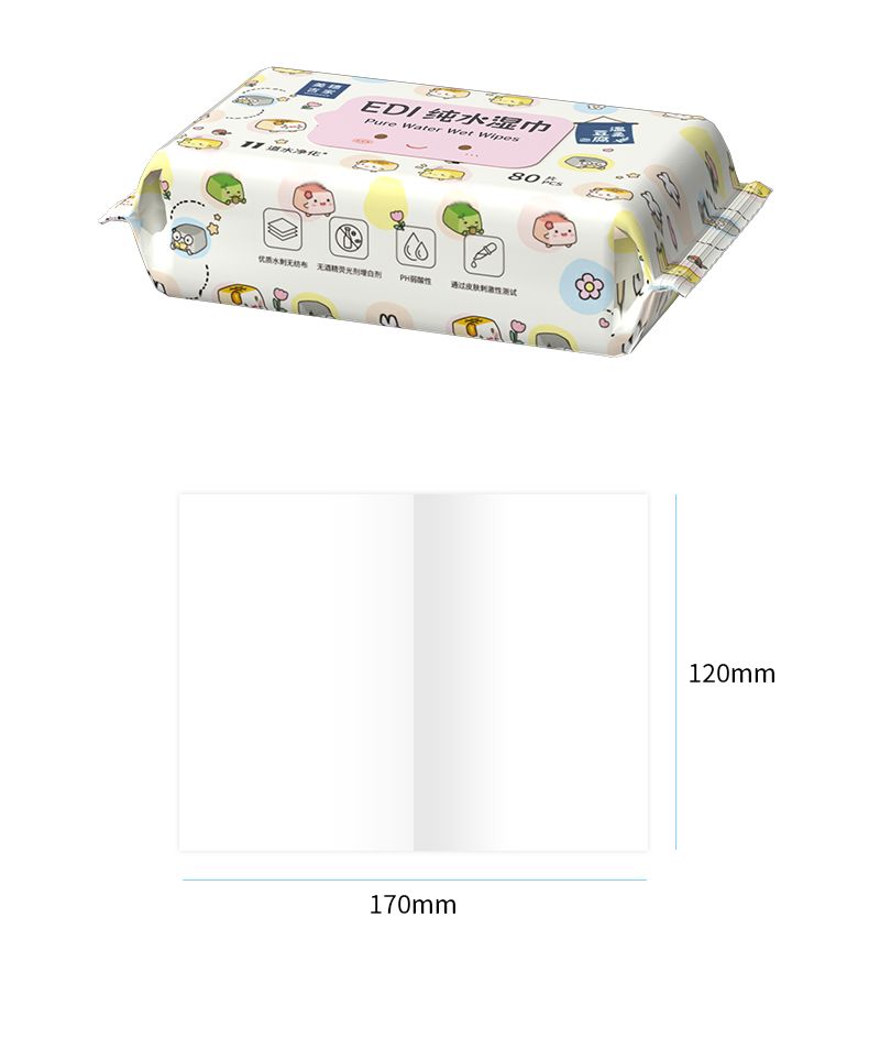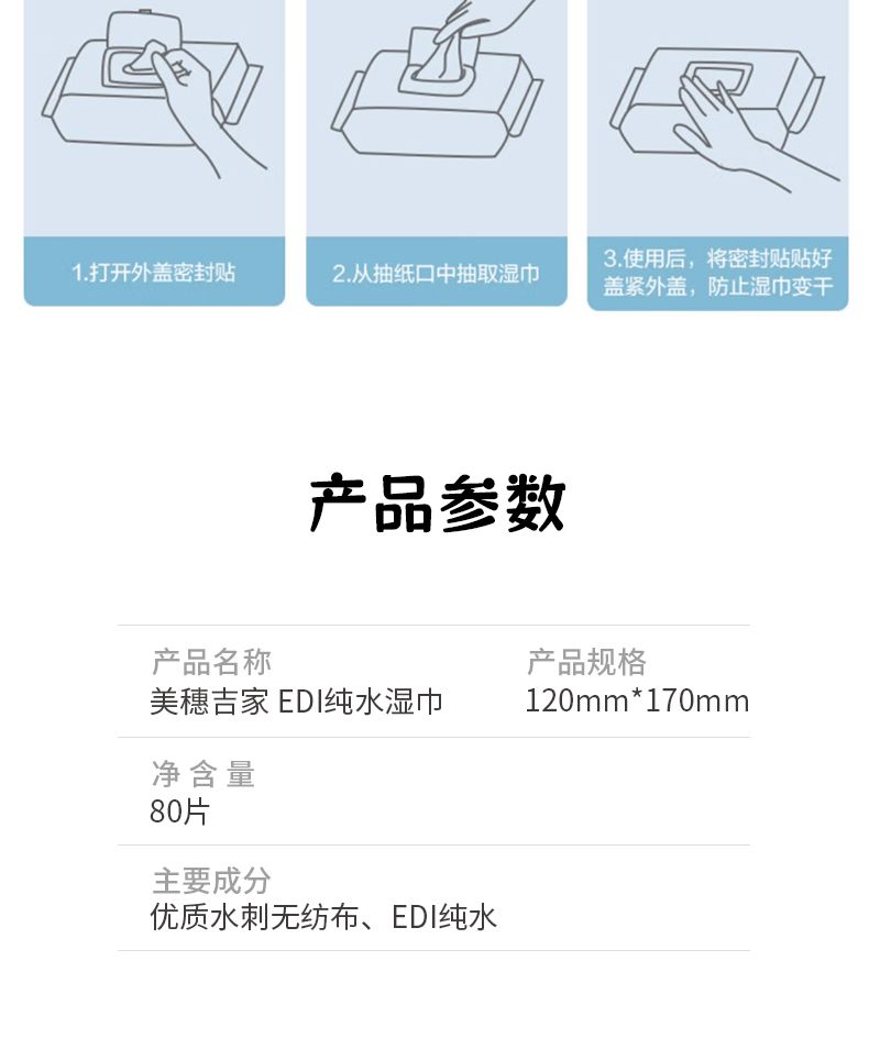 商品名称:美穗吉家(mihooce)EDI纯水洁肤湿巾 洁肤柔湿巾 婴儿湿巾温和清洁 80片*1包