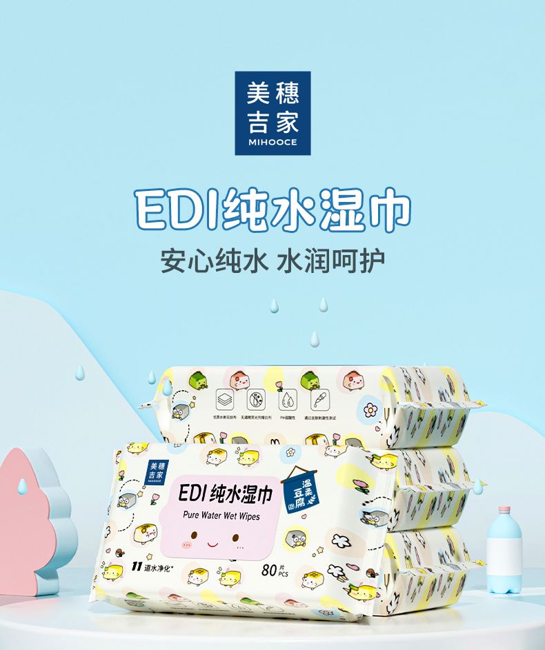 美穗吉家(mihooce)EDI纯水洁肤湿巾 洁肤柔湿巾 婴儿湿巾温和清洁 80片*1包