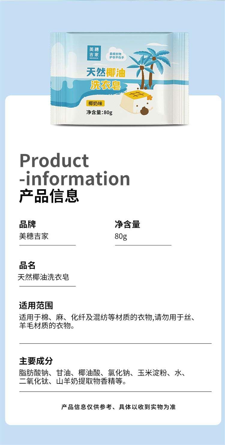 商品名称:美穗吉家(mihooce)洗衣皂 温和亲肤 天然椰油倍净护手 6块装(80g/块)