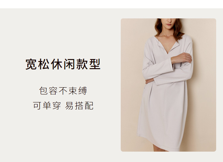 商品名称:NEIWAI内外宽松连衣裙小翻领棉质面料日常睡眠休闲居家 131914