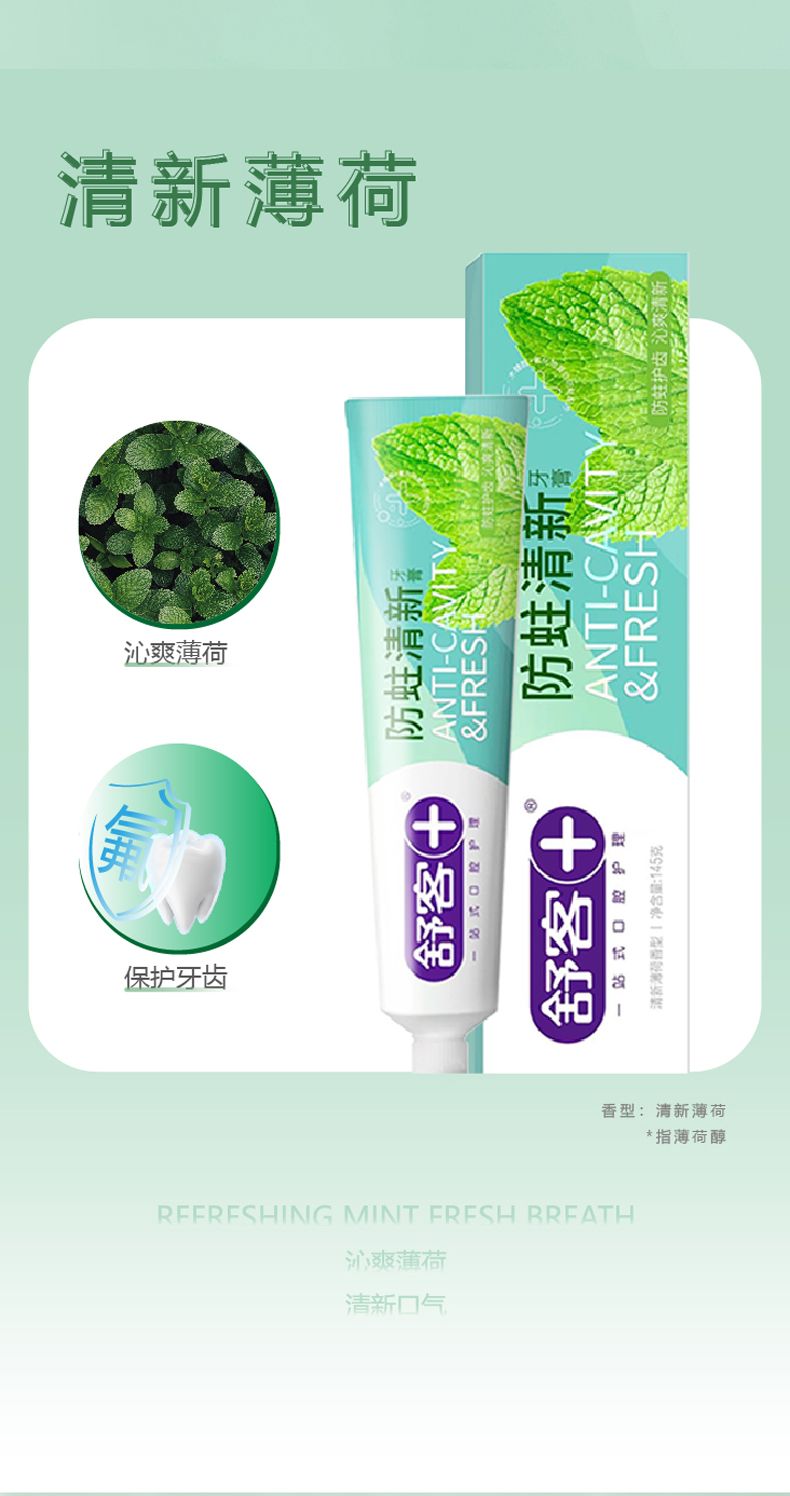 商品名称:舒客 逍遥套装 ZHS-TX22 沁爽防蛀清牙膏145g+宽头密炭沁爽牙刷+专效口清18ml+洁齿牙线棒