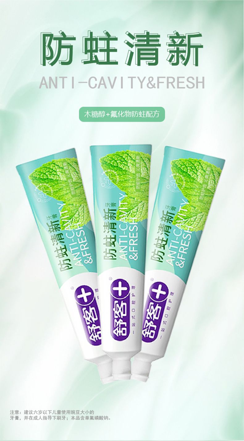 舒客 逍遥套装 ZHS-TX22 沁爽防蛀清牙膏145g+宽头密炭沁爽牙刷+专效口清18ml+洁齿牙线棒
