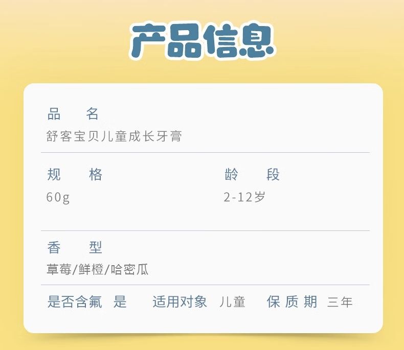 商品名称:舒客宝贝 奥飞优享组合 ZHSB-CY30 舒客宝贝儿童成长牙膏(草莓味/鲜橙味)60g*3