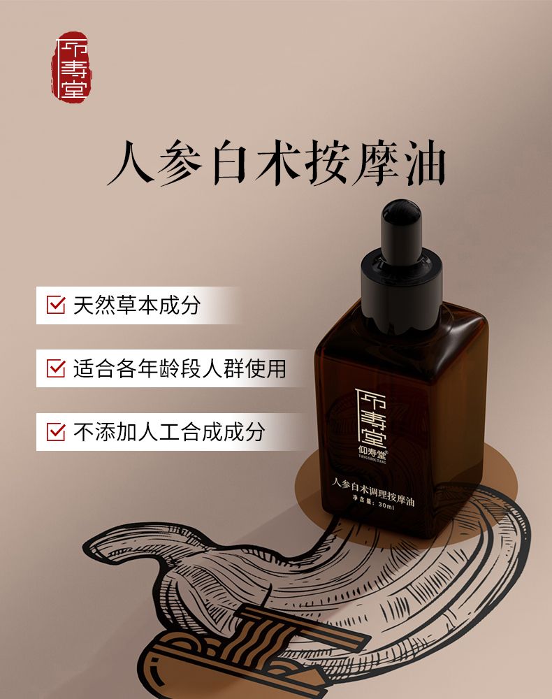 商品名称:仰寿堂人参白术脾胃调理按摩油30ml