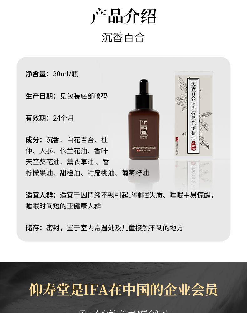 商品名称:仰寿堂沉香百合助眠调理按摩油30ml