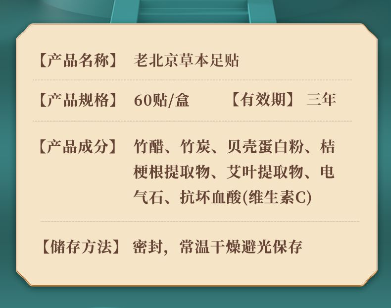 商品名称:瑶辰老北京足贴60贴/盒 (暖足贴足部护理养生 祛湿排毒去除湿气)