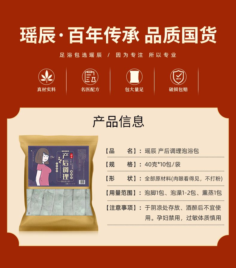 商品名称:瑶辰产后月子泡脚药包40g/包*10包 (月子礼物 艾草老姜艾叶防风桑枝当归药浴)