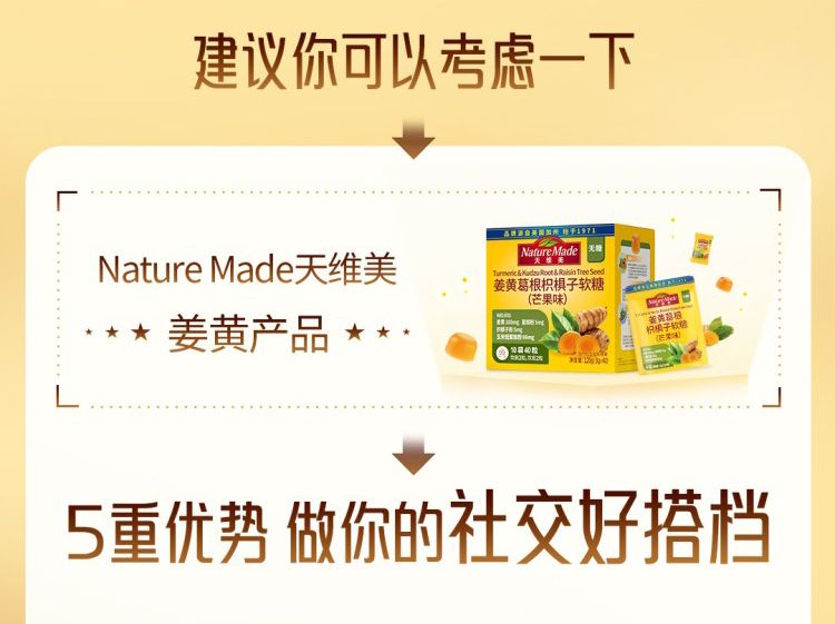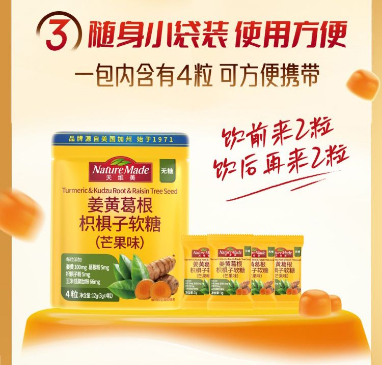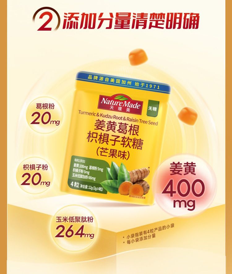 商品名称:天维美 姜黄葛根枳子凝胶糖果 芒果味 120g(40粒)