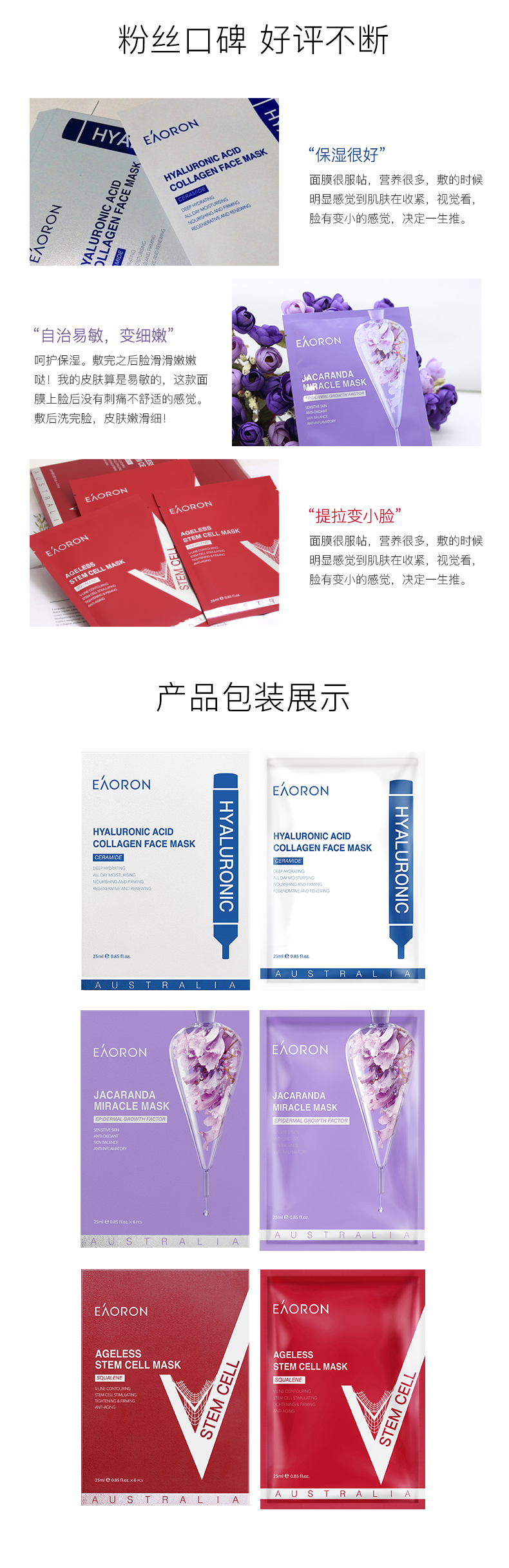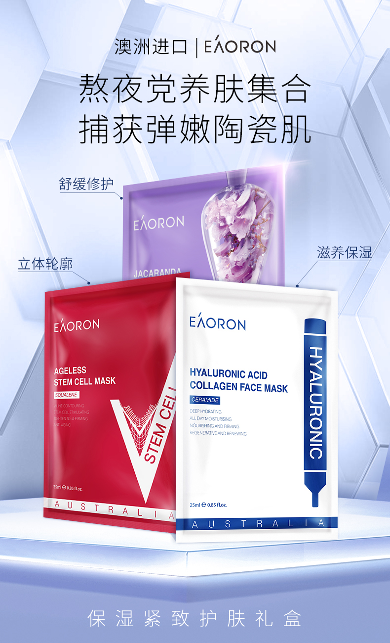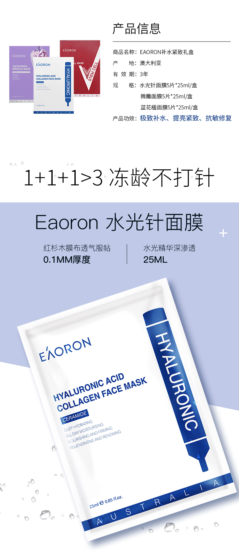 商品名称:Eaoron澳容 白面膜+微雕+蓝花楹面膜 补水保湿V脸修护3盒装护肤套装