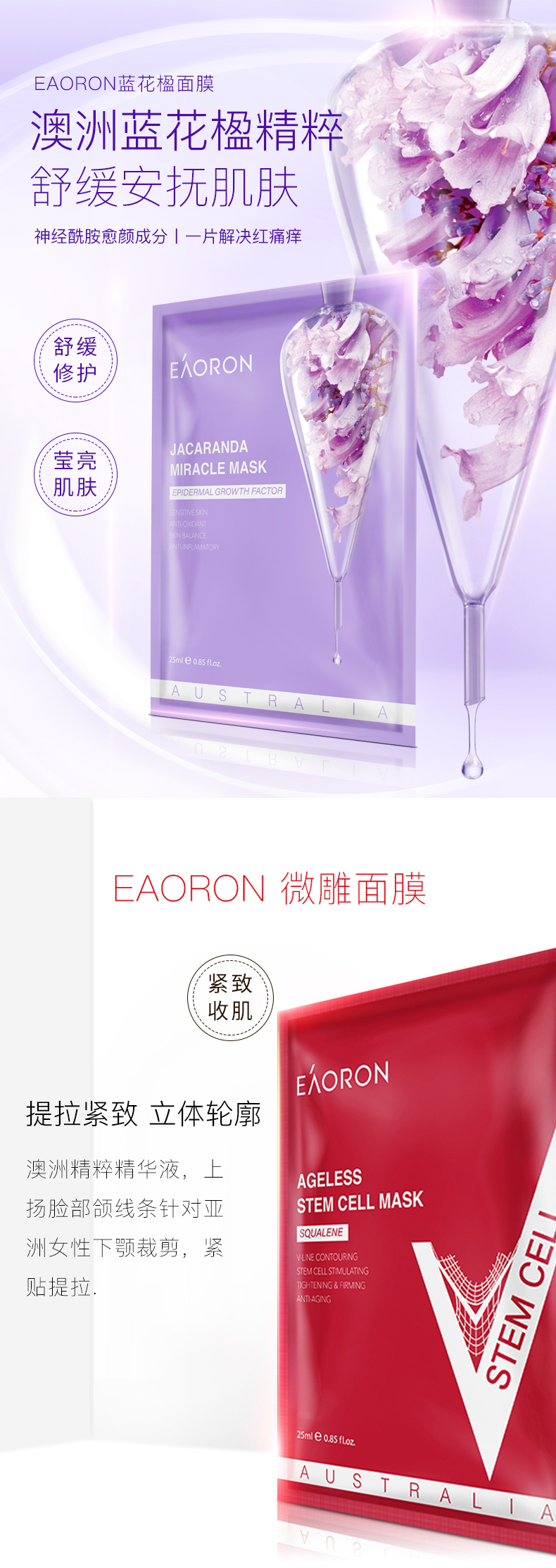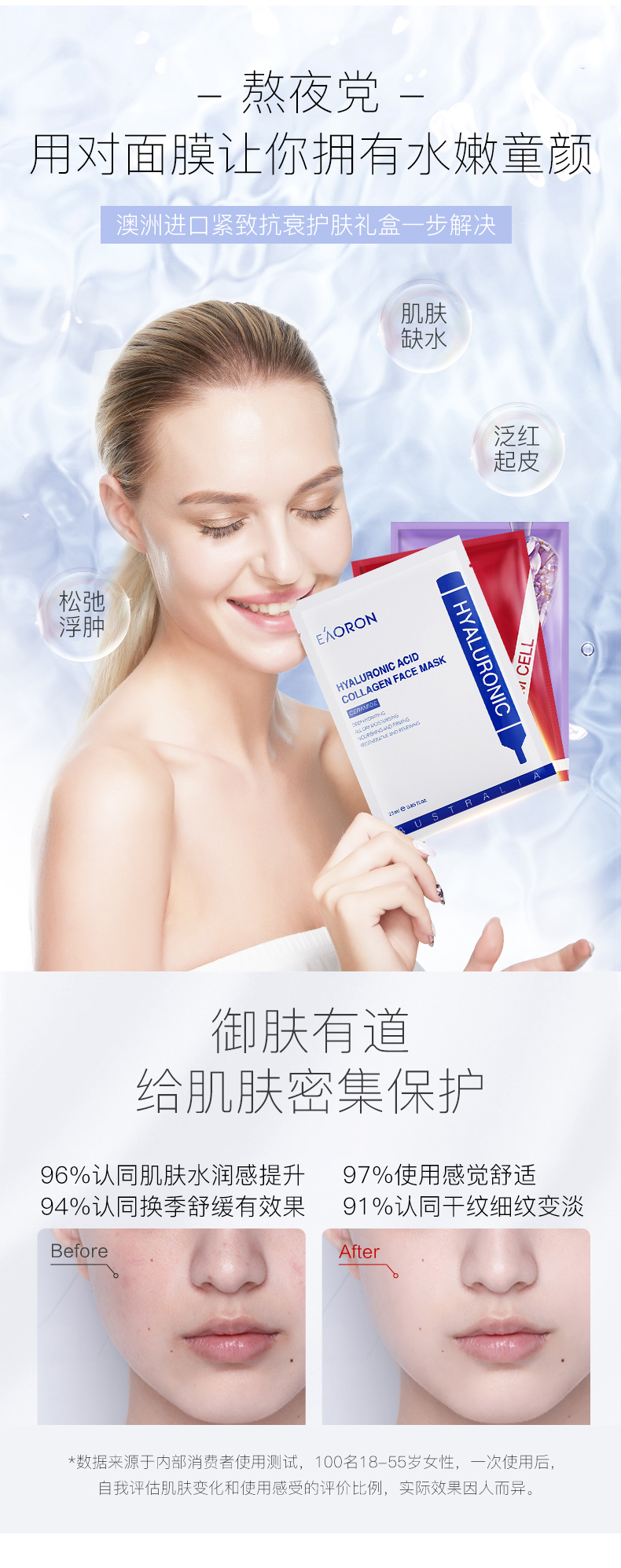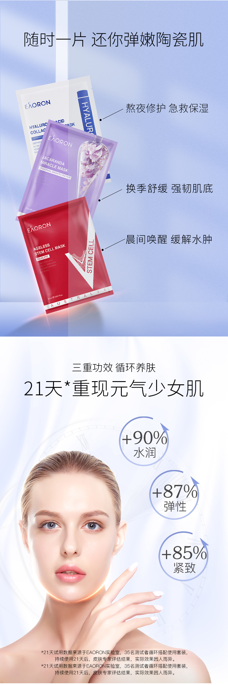 商品名称:Eaoron澳容 白面膜+微雕+蓝花楹面膜 补水保湿V脸修护3盒装护肤套装