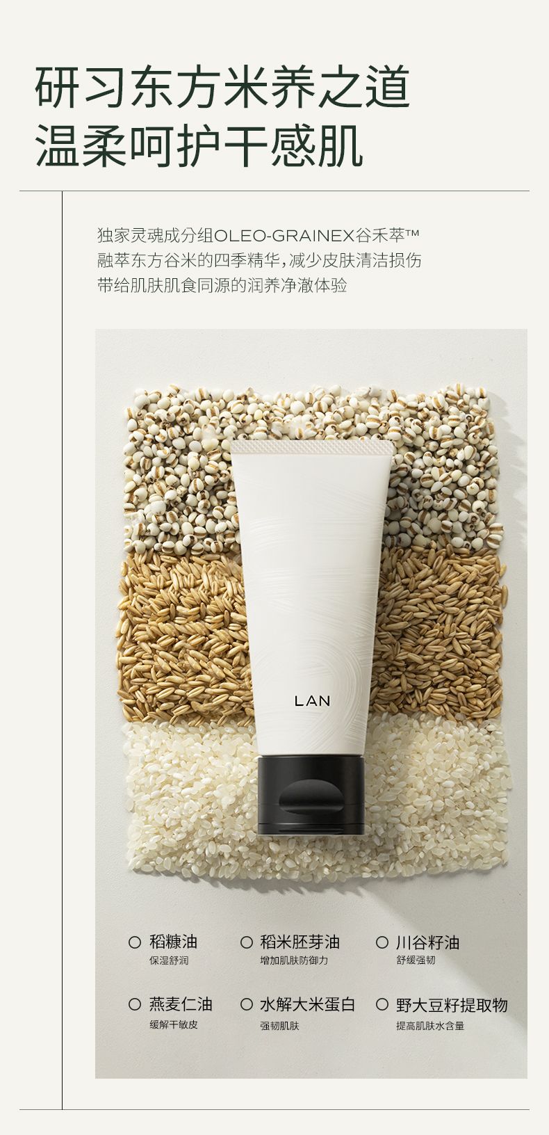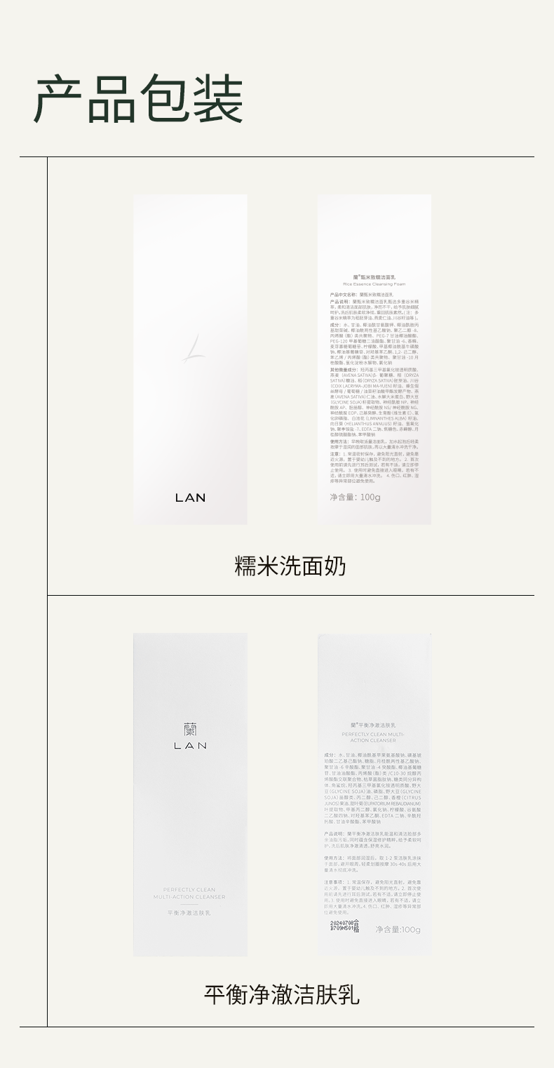 商品名称:【买即赠款洁面一支+30g】LAN蘭同甄米致糯洁面乳100g