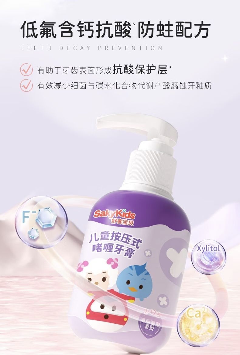 儿童声波电动牙刷B2粉色+儿童按压式啫喱牙膏150g(清新葡萄味)+儿童按压式啫喱牙膏150g(草莓酸奶味)