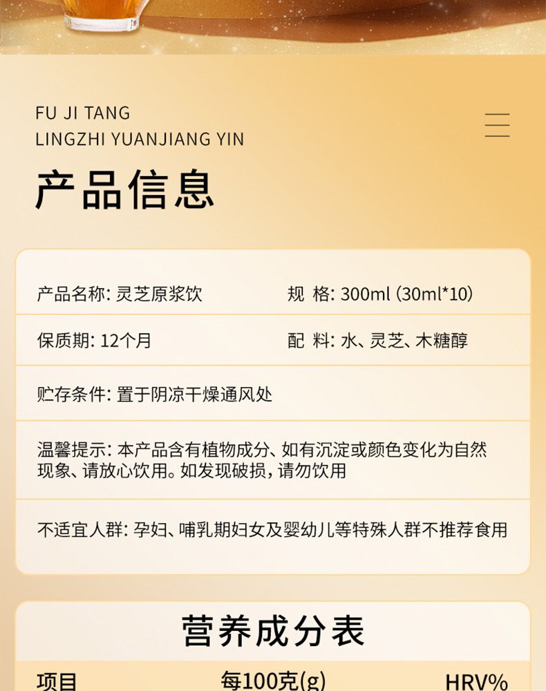 商品名称:茯济堂灵芝原浆饮30ml*10瓶