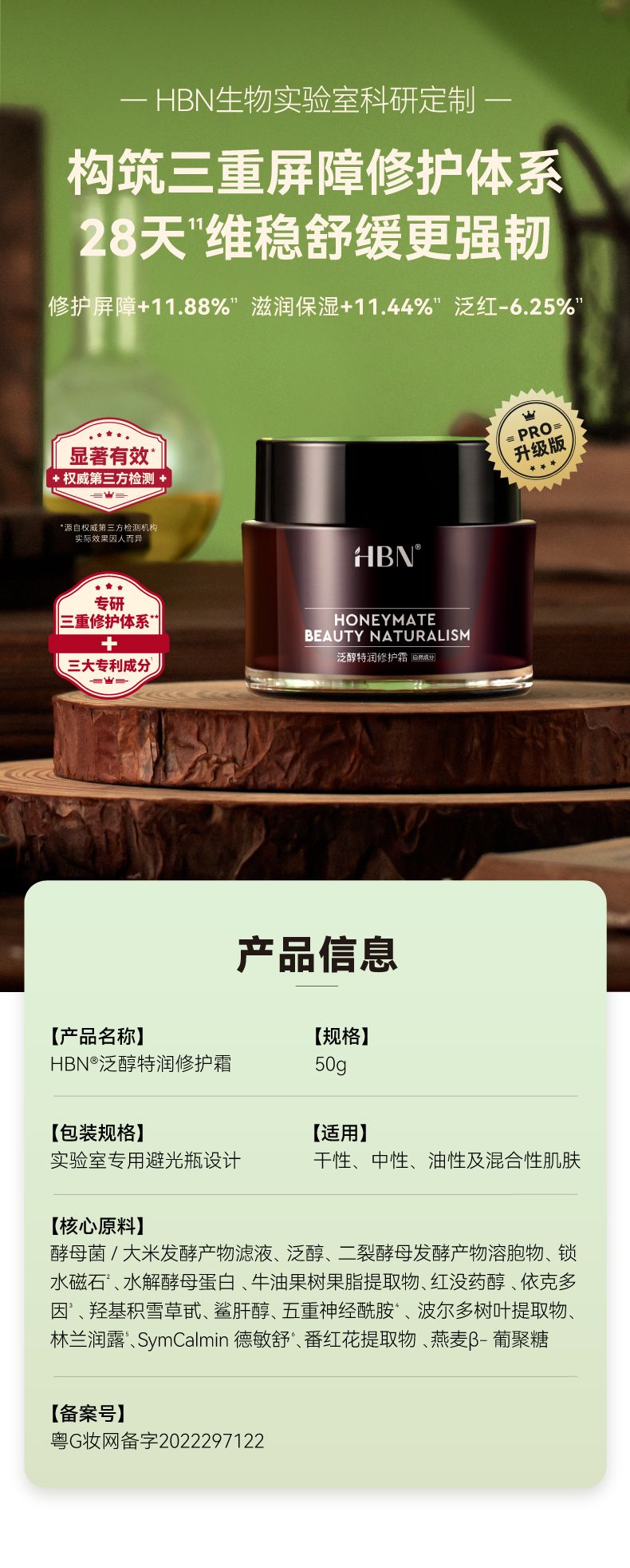 商品名称:【买即赠精萃露10ml*2+面膜1片】HBN 泛醇特润修护霜 50g