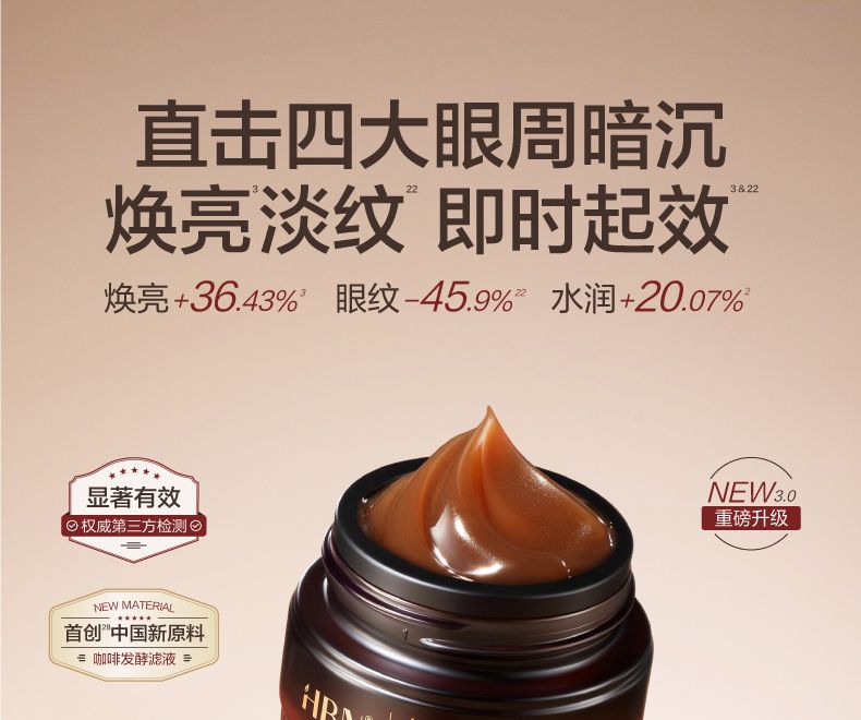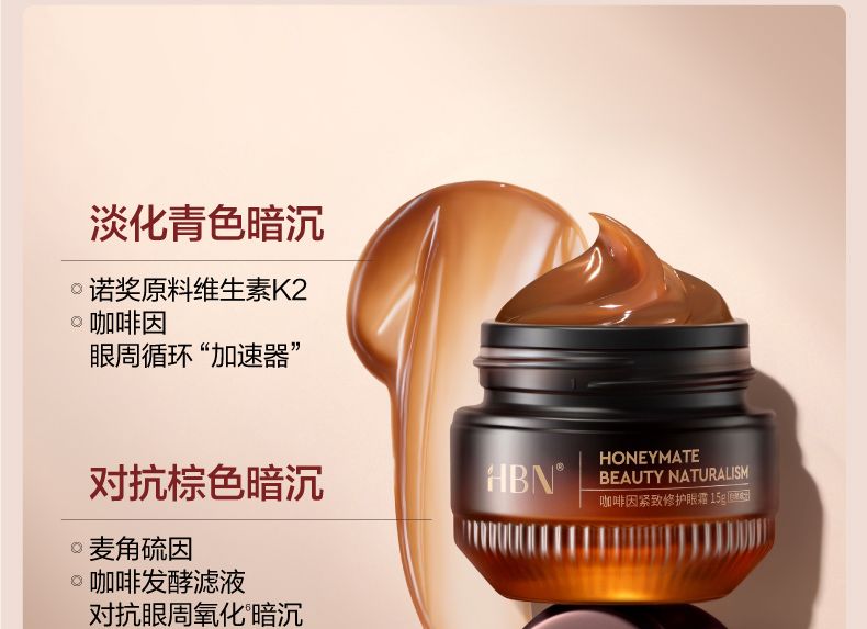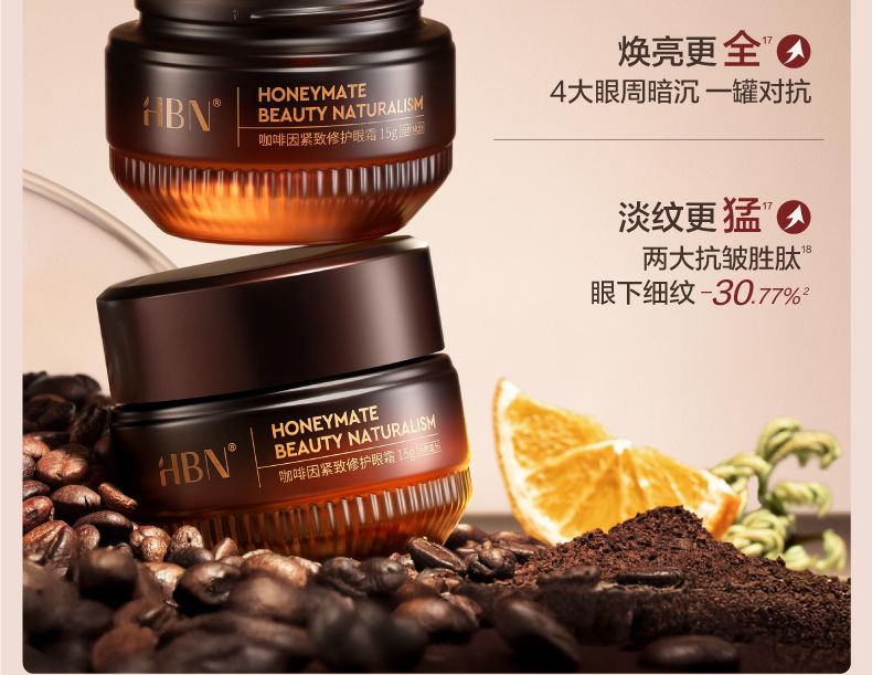 商品名称:HBN 咖啡因紧致修护眼霜 15g 【买即赠发光水30ml+视黄醇精华乳10ml+眼精华3ml】