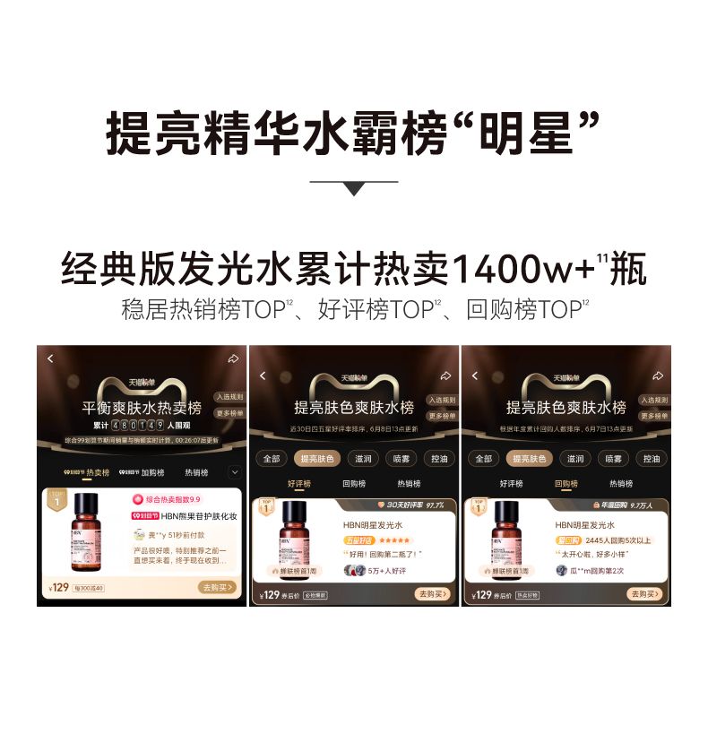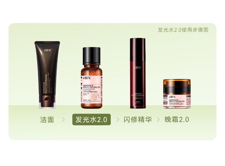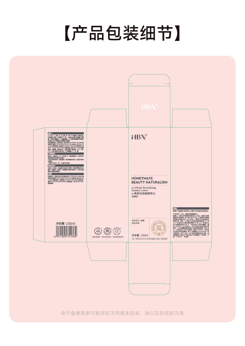 商品名称:HBN α-熊果苷焕颜精萃水2瓶 150ml*2【买即赠发光水30ml+视黄醇精华乳10ml+洁面乳20g+柔雾喷头】