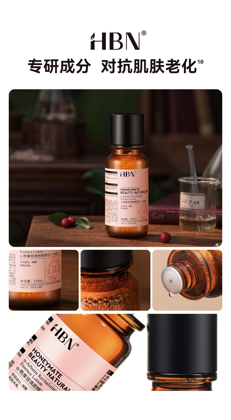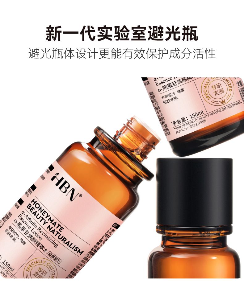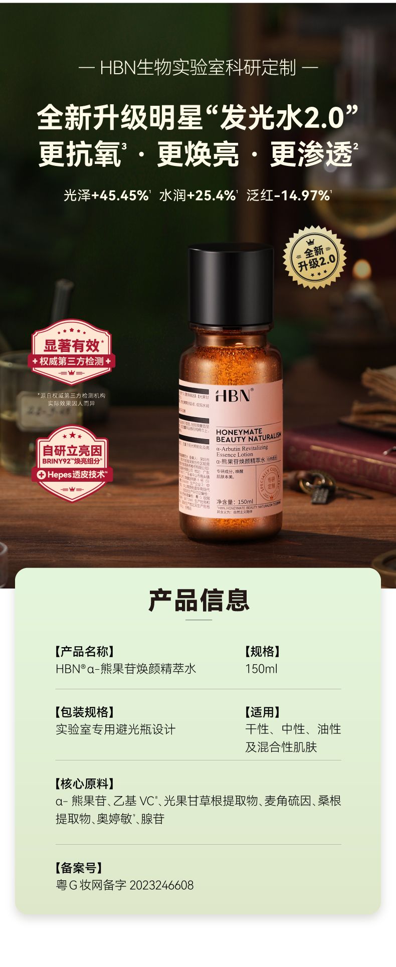 HBN α-熊果苷焕颜精萃水2瓶 150ml*2【买即赠发光水30ml+视黄醇精华乳10ml+洁面乳20g+柔雾喷头】