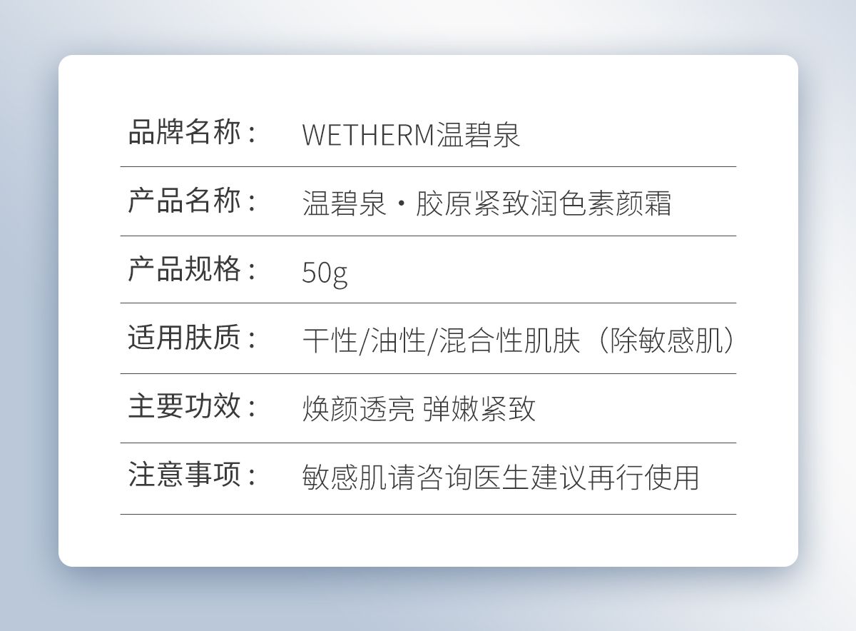 商品名称:Wetherm/温碧泉 胶原紧致润色素颜霜50g 配赠10g