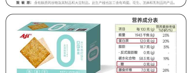 商品名称:Aji 苏打饼干 245g/盒*2(高纤奇亚籽1+高纤藜麦1)