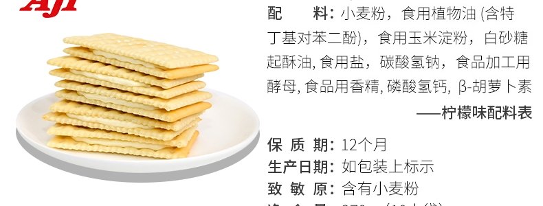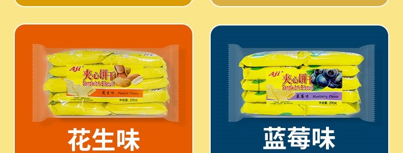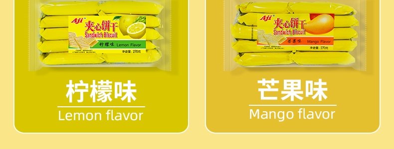 商品名称:Aji 夹心饼干 270g*3包(柠檬味1+蓝莓味+芒果味1)
