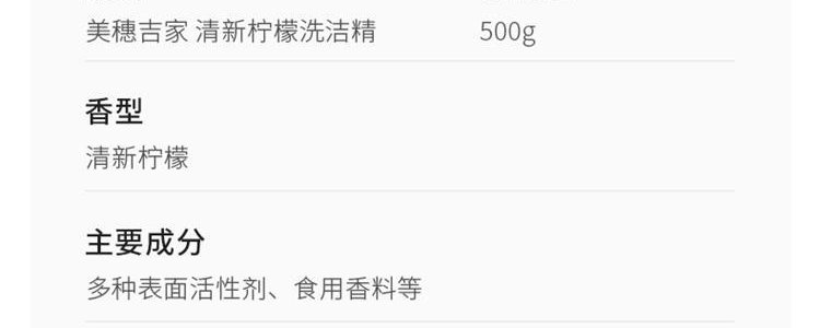 商品名称:美穗吉家 (mihooce) 清新柠檬洗洁精 500g/瓶