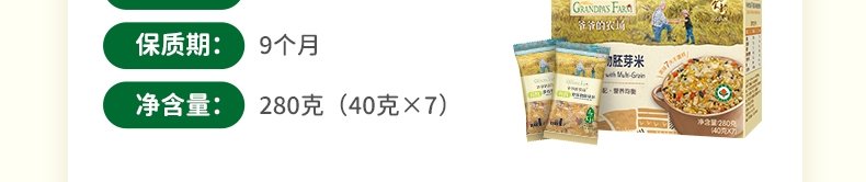 商品名称:爷爷的农场(Grandpa's Farm)有机多谷物胚芽米 280g