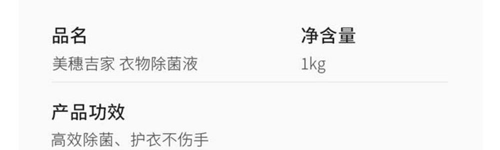 商品名称:美穗吉家 (mihooce) 衣物除菌液 1kg/瓶