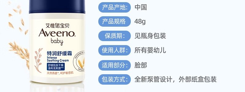 商品名称:艾惟诺(Aveeno)宝贝特润舒缓霜 48g