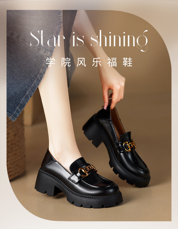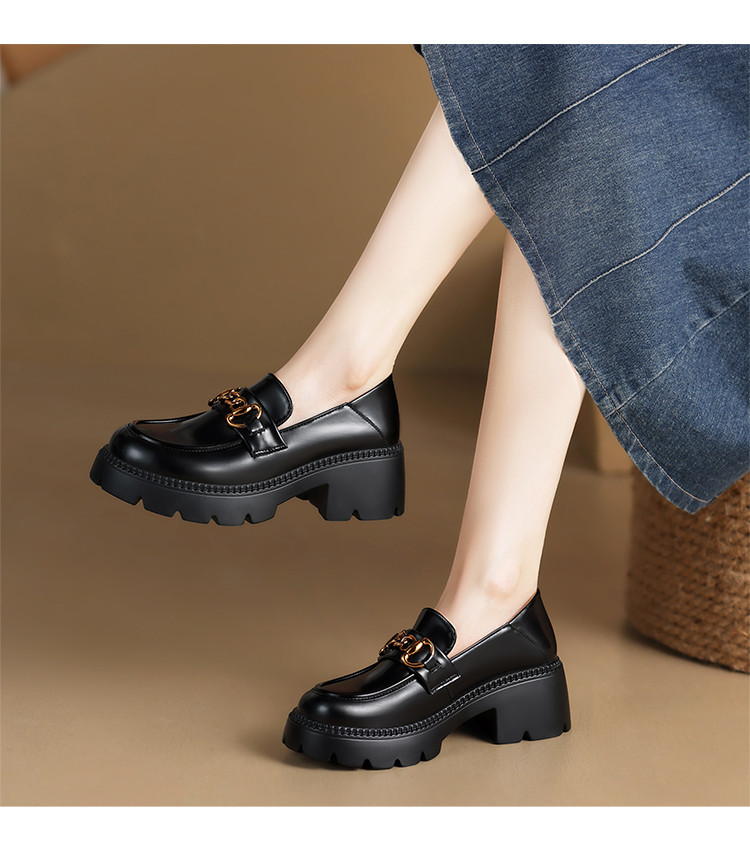 商品名称:【牛剖层革】粗跟英伦时尚厚底鞋单鞋女皮鞋女鞋春款百搭乐福鞋女 353088