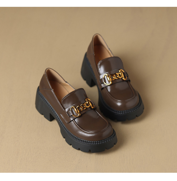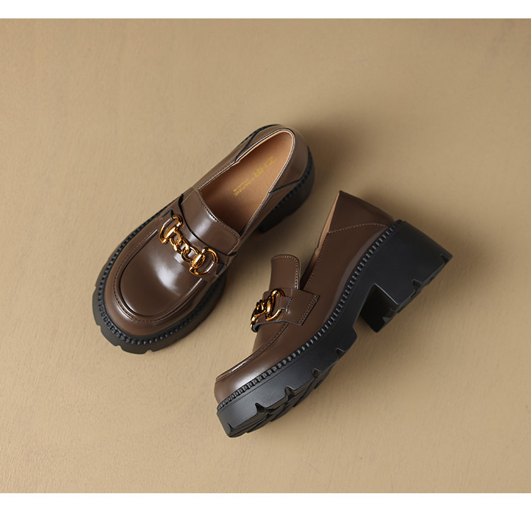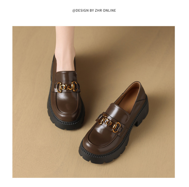 【牛剖层革】粗跟英伦时尚厚底鞋单鞋女皮鞋女鞋春款百搭乐福鞋女 353088