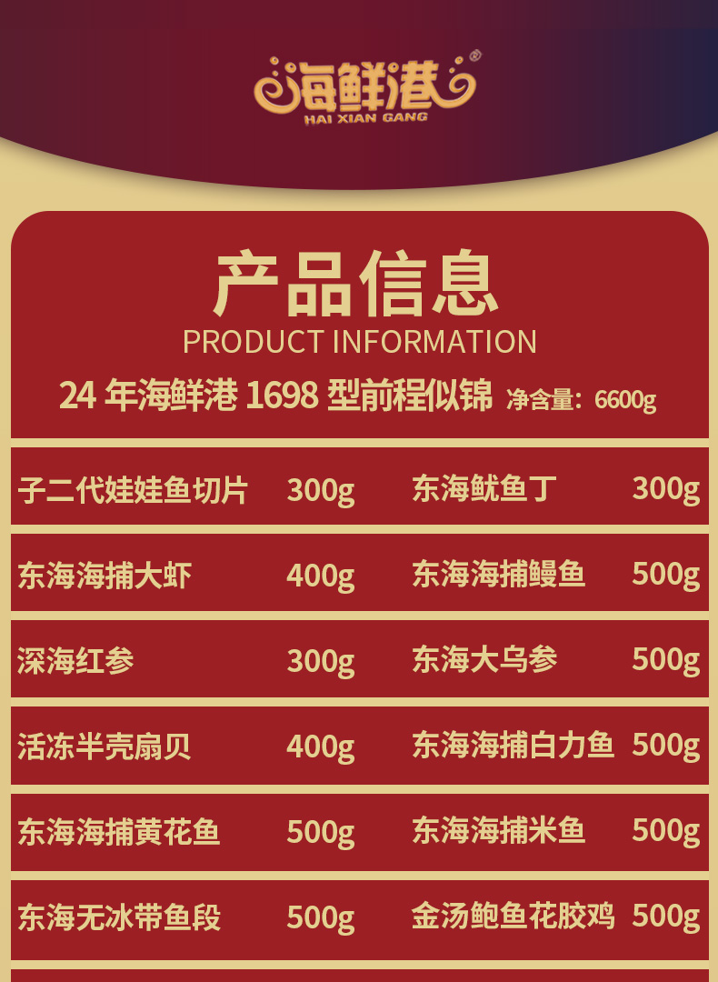 商品名称:【顺丰配送】海鲜港24年东方海韵前程似锦海鲜礼盒1698型6600g