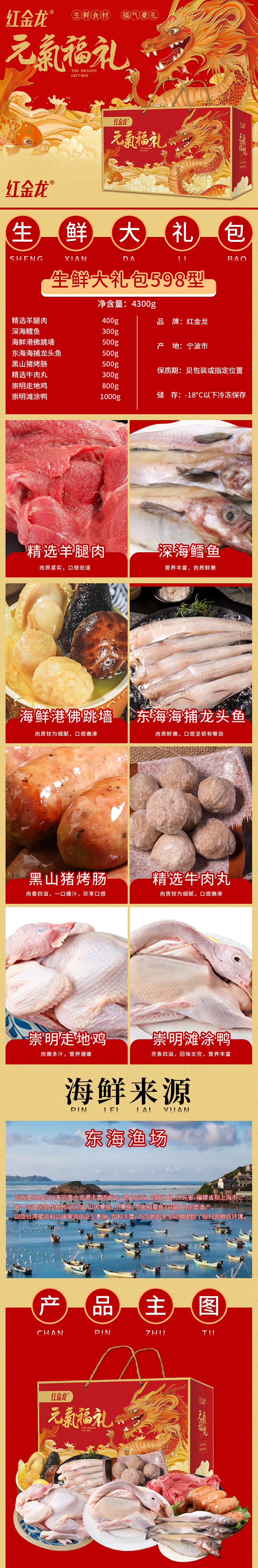 商品名称:【顺丰配送】红金龙24年元气福礼生鲜大礼包598型4300g