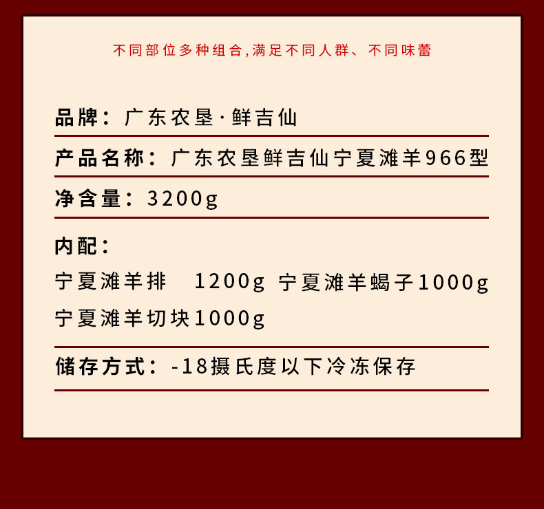 商品名称:【顺丰配送】廣東農垦鲜吉仙24年宁夏滩羊肉礼盒966型3200g