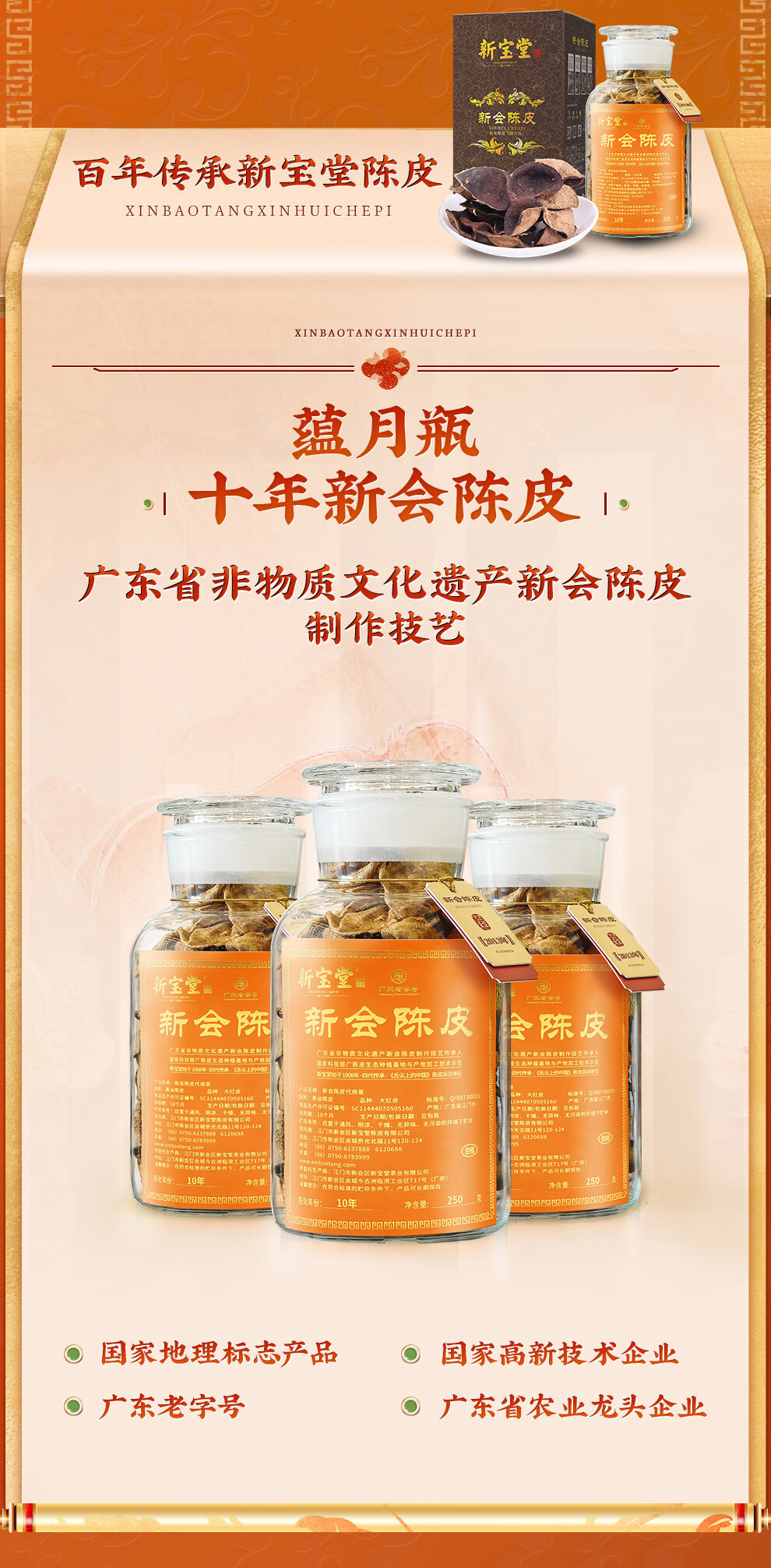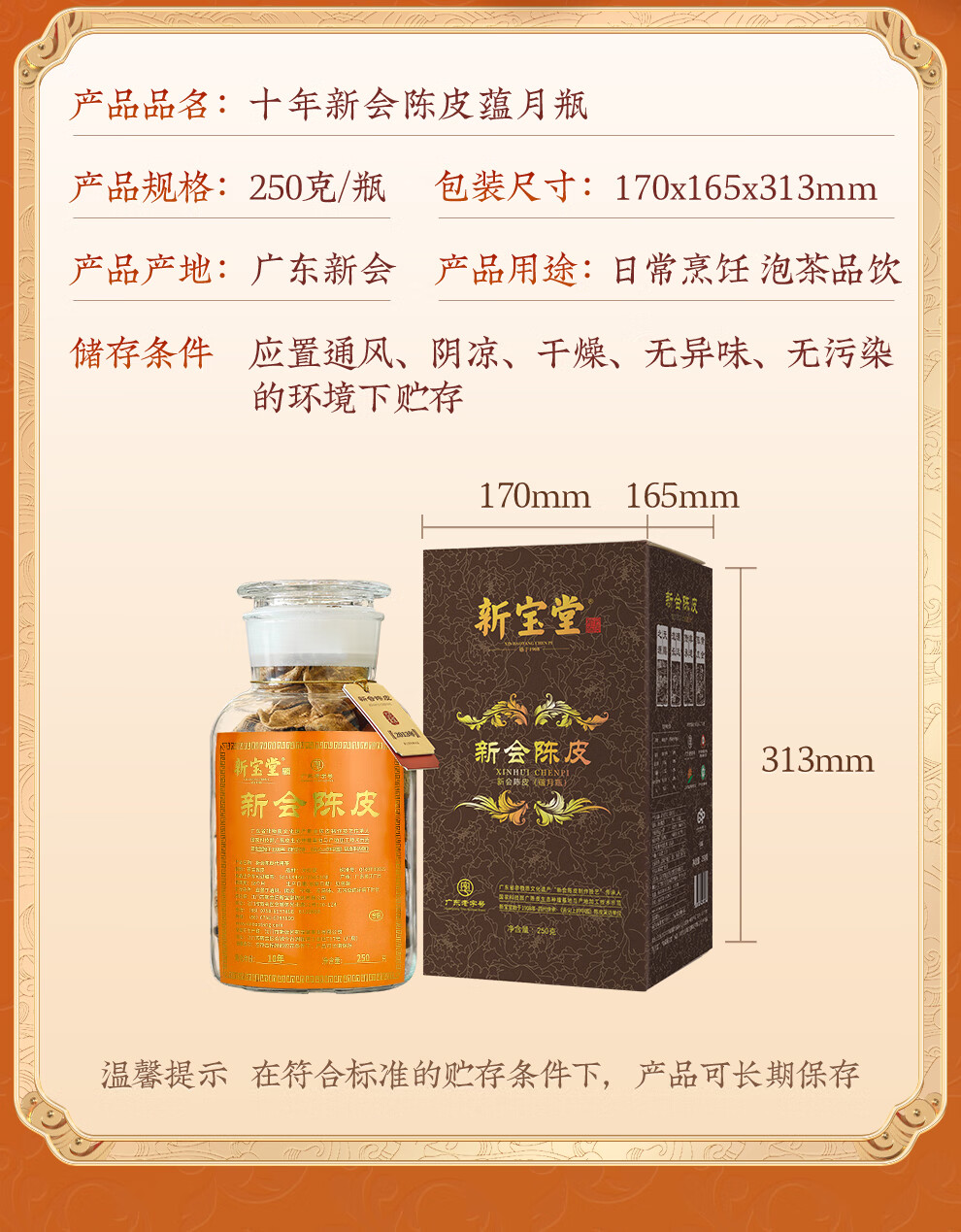 商品名称:新宝堂十年陈皮蕴月瓶250g