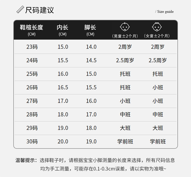 25码鞋内长16.0适合脚长15.0cm