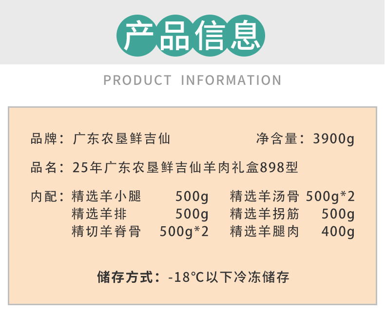 商品名称:【顺丰配送】廣東農垦鲜吉仙25年草原羊肉礼盒898型3900g