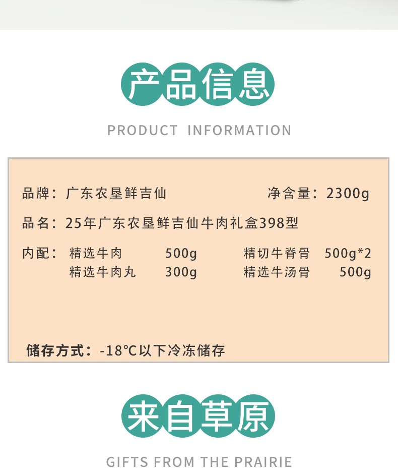 商品名称:【顺丰配送】廣東農垦鲜吉仙25年草原牛肉礼盒398型2300g