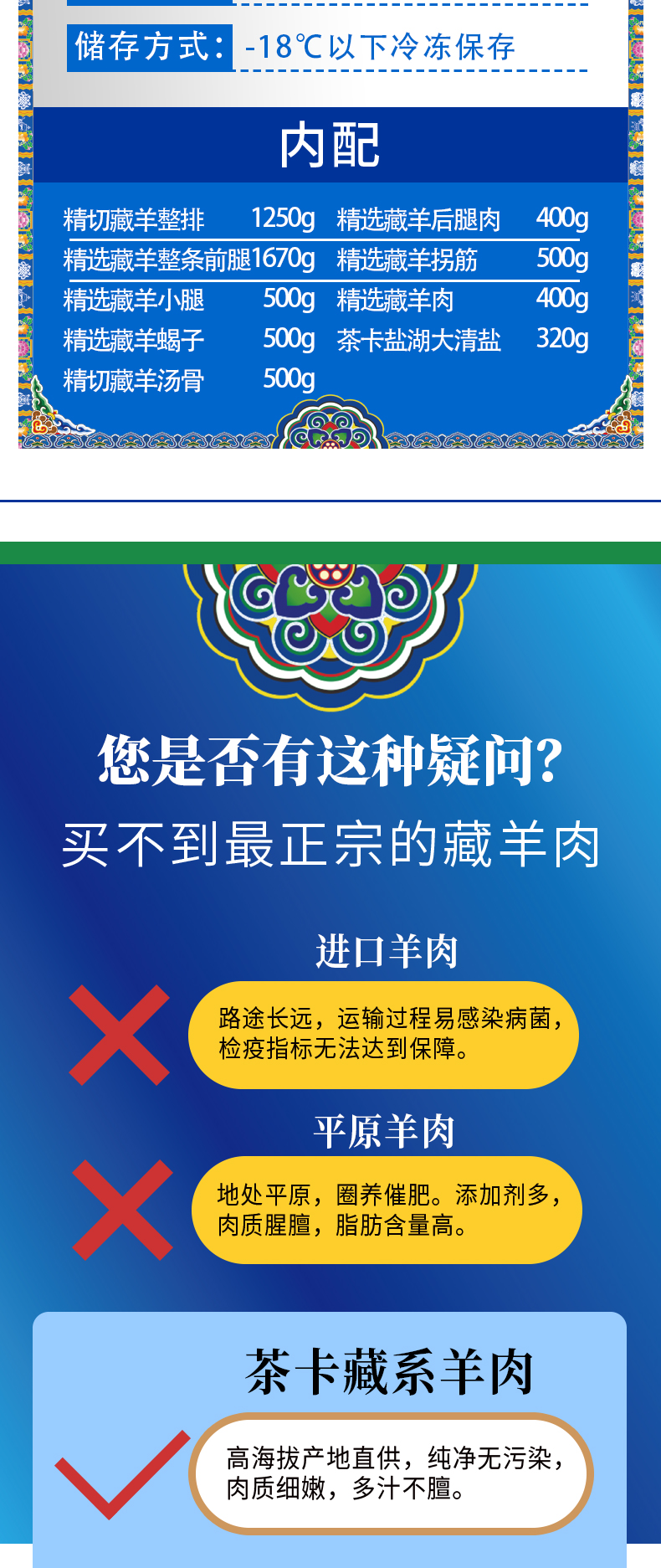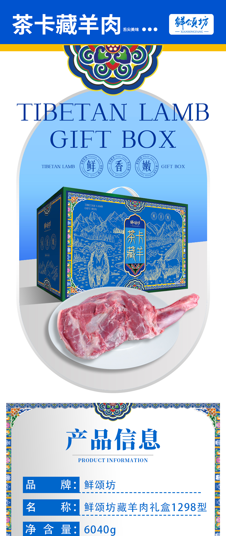 商品名称:【顺丰配送】鲜颂坊25年茶卡藏羊肉礼盒1298型6040g