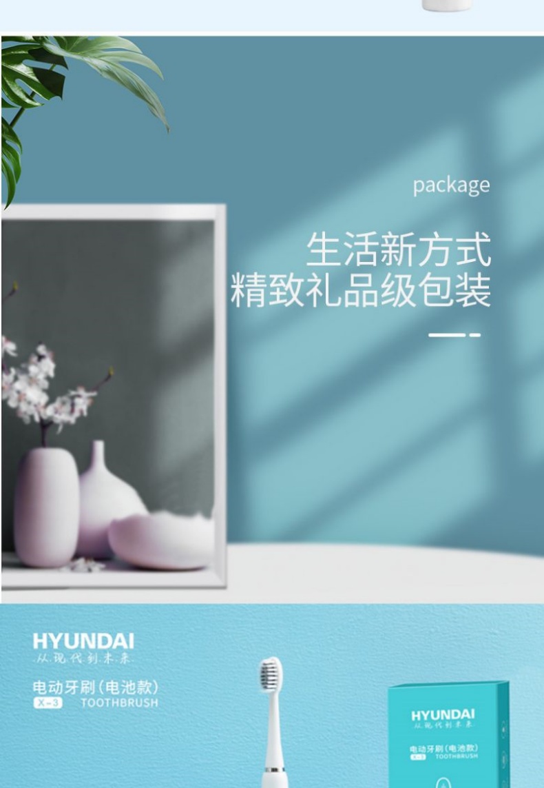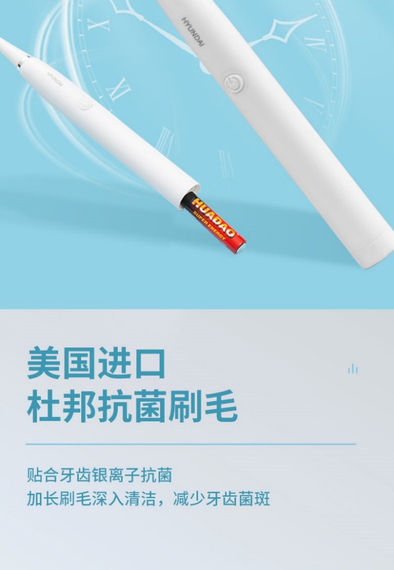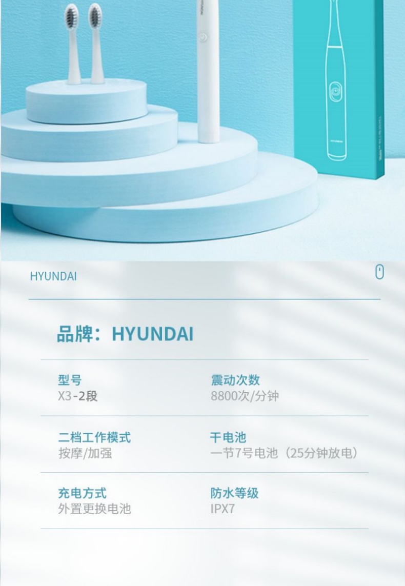 商品名称:HYUNDAI/现代电动牙刷电池款配3个刷头X3