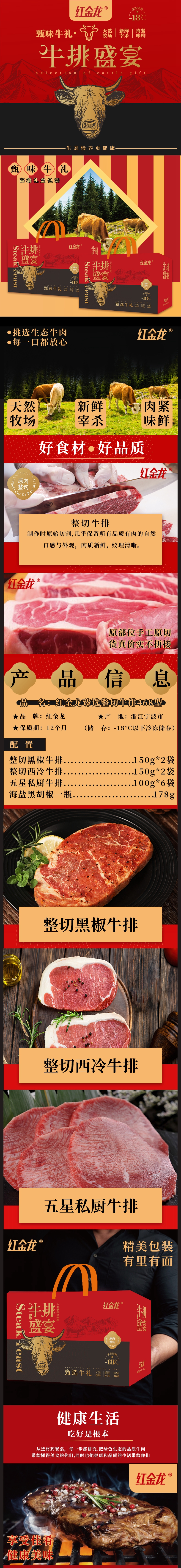 商品名称:【顺丰配送】红金龙24年牛排盛宴臻选整切牛排礼盒468型1378g