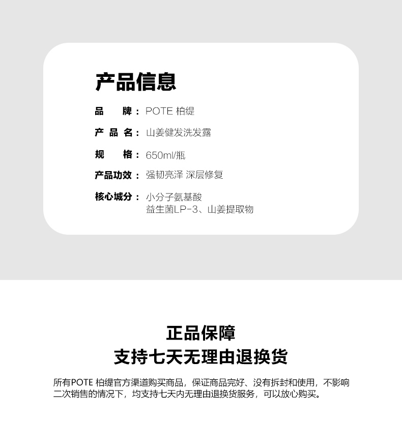 商品名称:POTE/柏缇山姜健发无硅油洗发露650ml