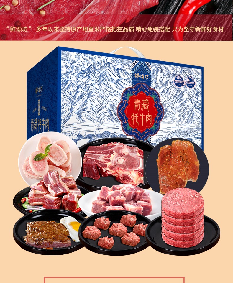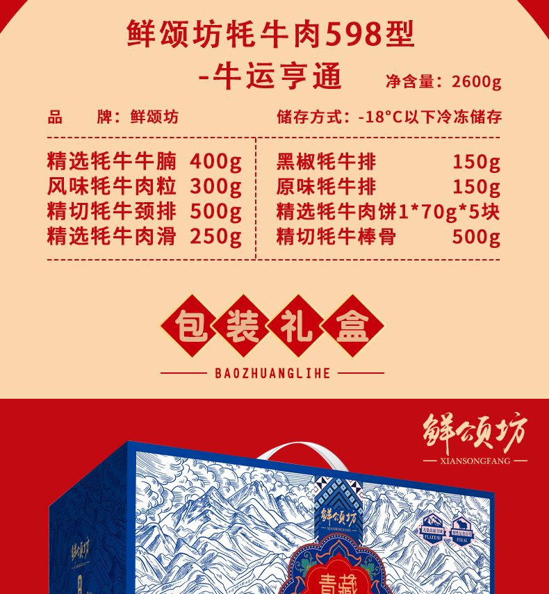 商品名称:【顺丰配送】鲜颂坊牛运亨通青藏牦牛肉礼盒598型2600g