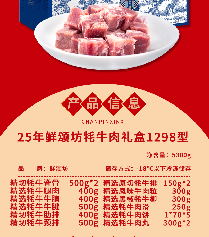 商品名称:【顺丰配送】鲜颂坊25年青藏牦牛肉礼盒1298型5300g