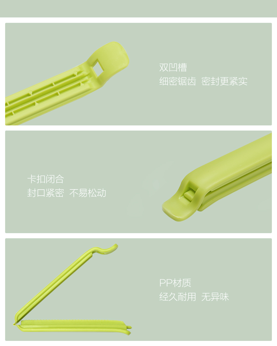商品名称:Quange/全格保鲜封口夹中号4只装-芽绿色CF080102