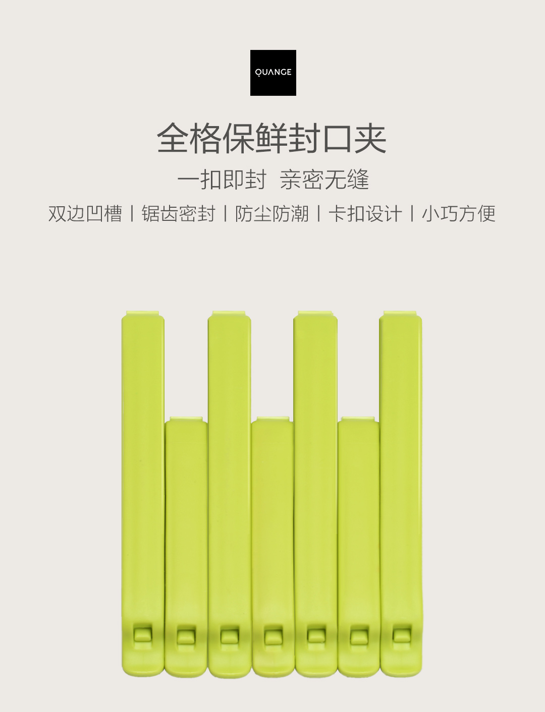 Quange/全格保鲜封口夹中号4只装-芽绿色CF080102