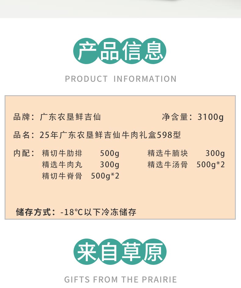 商品名称:【顺丰配送】廣東農垦鲜吉仙25年草原牛肉礼盒598型3100g